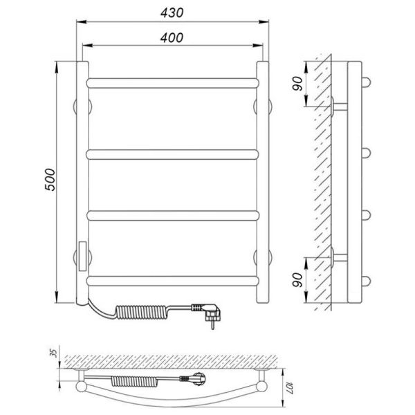 Модель: КлассикКод товара: 73207640Материал: сталь нержавеющая AISI304Диаметры и толщина: стойка Ø32, толщина 1,5 мм; перемычка Ø20, толщина 1 ммРегулятор: на стойке (программируемый регулятор)Терморегулятор: даТаймер: даВозможность скрытого монтажа: да (приобретается отдельно)Размещение шнура: слева (Также есть исполнение с правым подключением)Температура поверхности изделия*: 50±5°CНапряжение питания: 220 ВВес: 3 кгКомплектация: