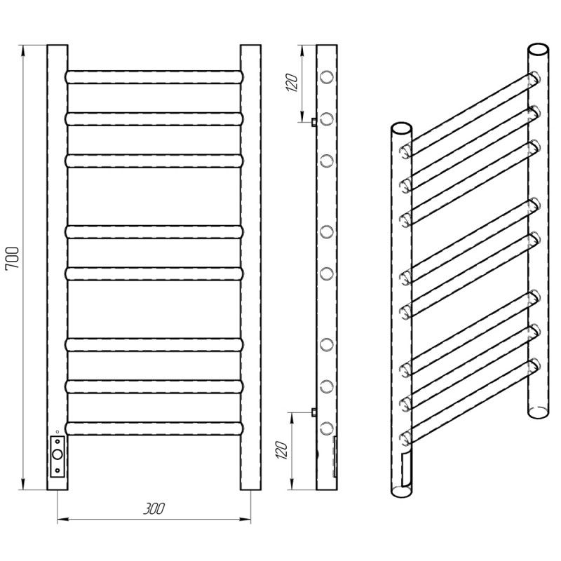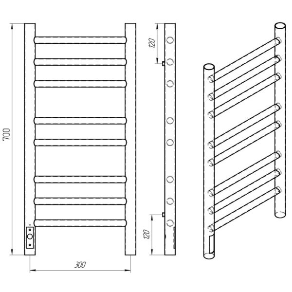 Полотенцесушитель электрический Laris Лаванда ЧК П8 300х700 L 73207620 Белый муарЭлектрический ПС изготовлен из конструкционной стали с толщиной стенки 1,5 мм для обеспечения оптимальной температуры нагрева изделия. Внутри установлен сухой ТЭН который обеспечивает экономию энергии,увеличивает срок службы изделия (по сравнению с изделиями с жидкостным теплоносителем). ТЭН имеет 3 степени защиты-от пыли,влаги, перегрева -100 процентная безопасность при эксплуатации! Гарантия 5 лет на изделие и лакокрасочное покрытие. Краска порошковая белая - матовая (муар) RAL 9016 с фосфотирующей основой. Терморегулятор кнопочный на стойке с функцией таймера. Температура нагрева поверхности изделия 50-55C. Для скрытого подключения изделие укомплектовано модулем скрытого подключения. Изделия торговой марки Laris имеют высокий уровень эксплуатационной надежности, обладают хорошей функциональностью при использовании. ТМ Laris - Репутация Комфорта