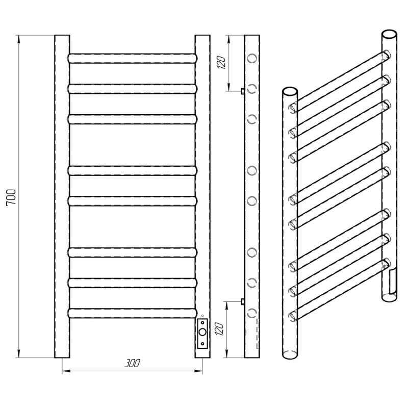 Полотенцесушитель электрический Laris Лаванда ЧК П8 300х700 R 73207621 Белый муарЭлектрический ПС изготовлен из конструкционной стали с толщиной стенки 1,5 мм для обеспечения оптимальной температуры нагрева изделия. Внутри установлен сухой ТЭН который обеспечивает экономию энергии,увеличивает срок службы изделия (по сравнению с изделиями с жидкостным теплоносителем). ТЭН имеет 3 степени защиты-от пыли,влаги, перегрева -100 процентная безопасность при эксплуатации! Гарантия 5 лет на изделие и лакокрасочное покрытие. Краска порошковая белая - матовая (муар) RAL 9016 с фосфотирующей основой. Терморегулятор кнопочный на стойке с функцией таймера. Температура нагрева поверхности изделия 50-55C. Для скрытого подключения изделие укомплектовано модулем скрытого подключения. Изделия торговой марки Laris имеют высокий уровень эксплуатационной надежности, обладают хорошей функциональностью при использовании. ТМ Laris - Репутация Комфорта