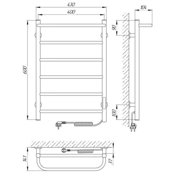 Полотенцесушитель электрический Laris Прайм 73207648 правый П6 40x60см хром купить