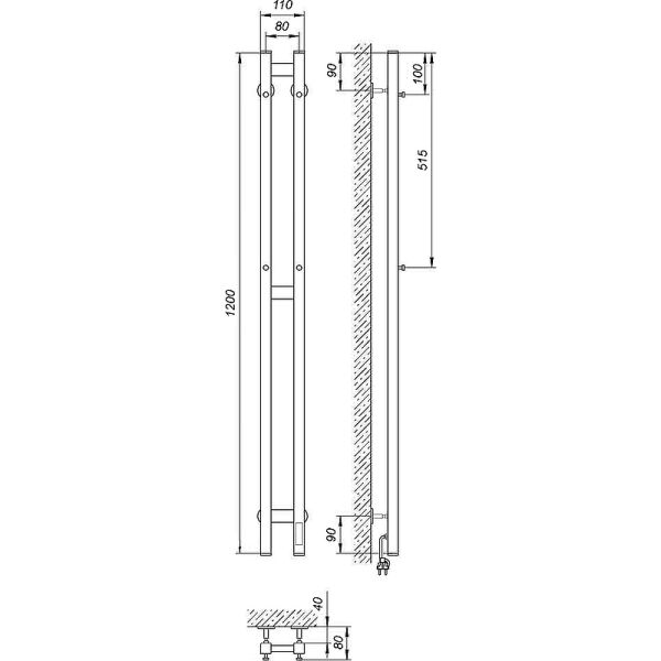 Полотенцесушитель электрический Laris Прайм Дуэт ЧК 80х1200 L 73207361 Белый муар купить