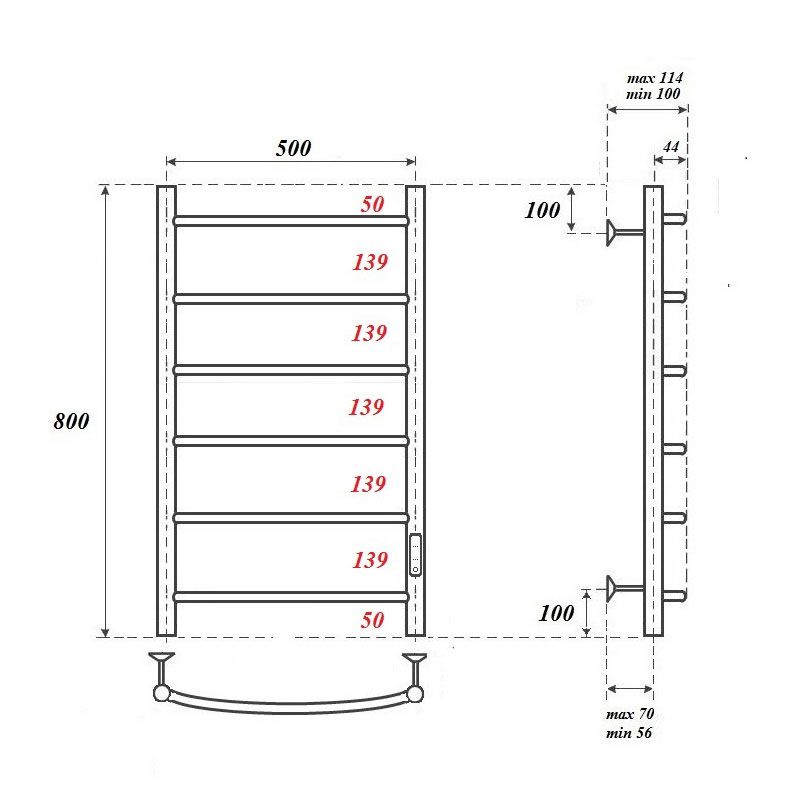 Полотенцесушитель электрический Point PN04858 П6 500x800 диммер справа, хромКомплектация: