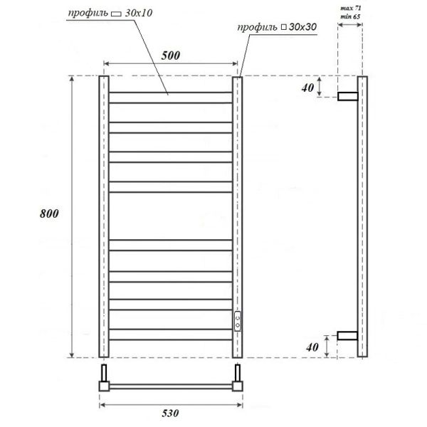 Полотенцесушитель электрический Point Меркурий П8, ширина 50 см, высота 80 см, диммер справа, белый, PN83858WКоличество секций - 8