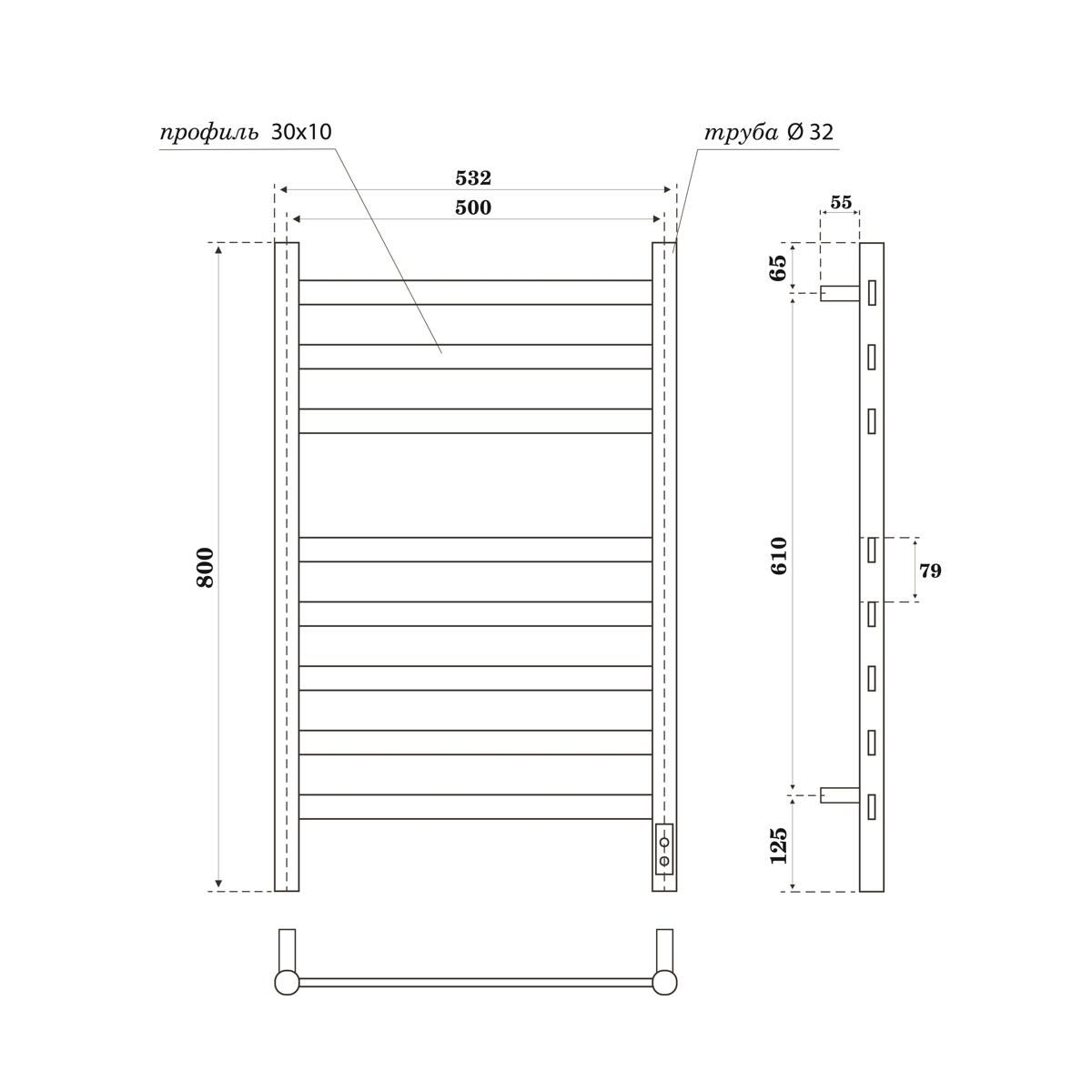 Электрический полотенцесушитель Point Феникс PN15858B П7 500x800 диммер справа.Характеристики:Цвет: черный.