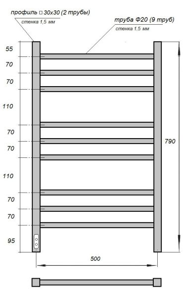 При этом подключение к электросети универсальное - как справа, так и слева.Электрические полотенцесушители с греющим кабелем Веста в цвете бронза