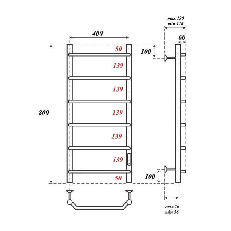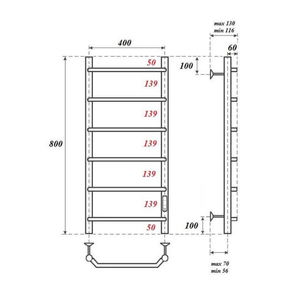 Полотенцесушитель электрический Point PN06848 П6 400x800 диммер справа, хромКомплектация: