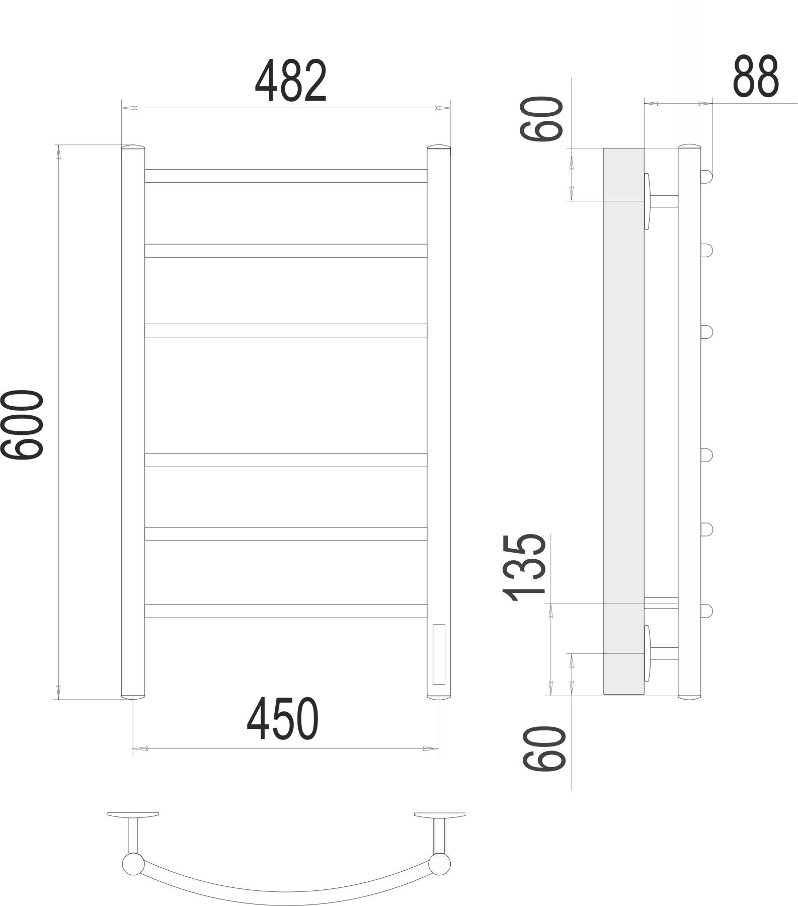 Полотенцесушитель электрический Terminus Классик П6 450х600 электро КС 9005 матовый