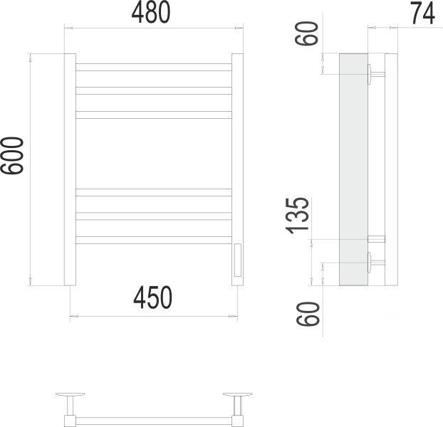 Полотенцесушитель электрический Terminus Ватикан П6 450х600 электро КС 9003 матовый
