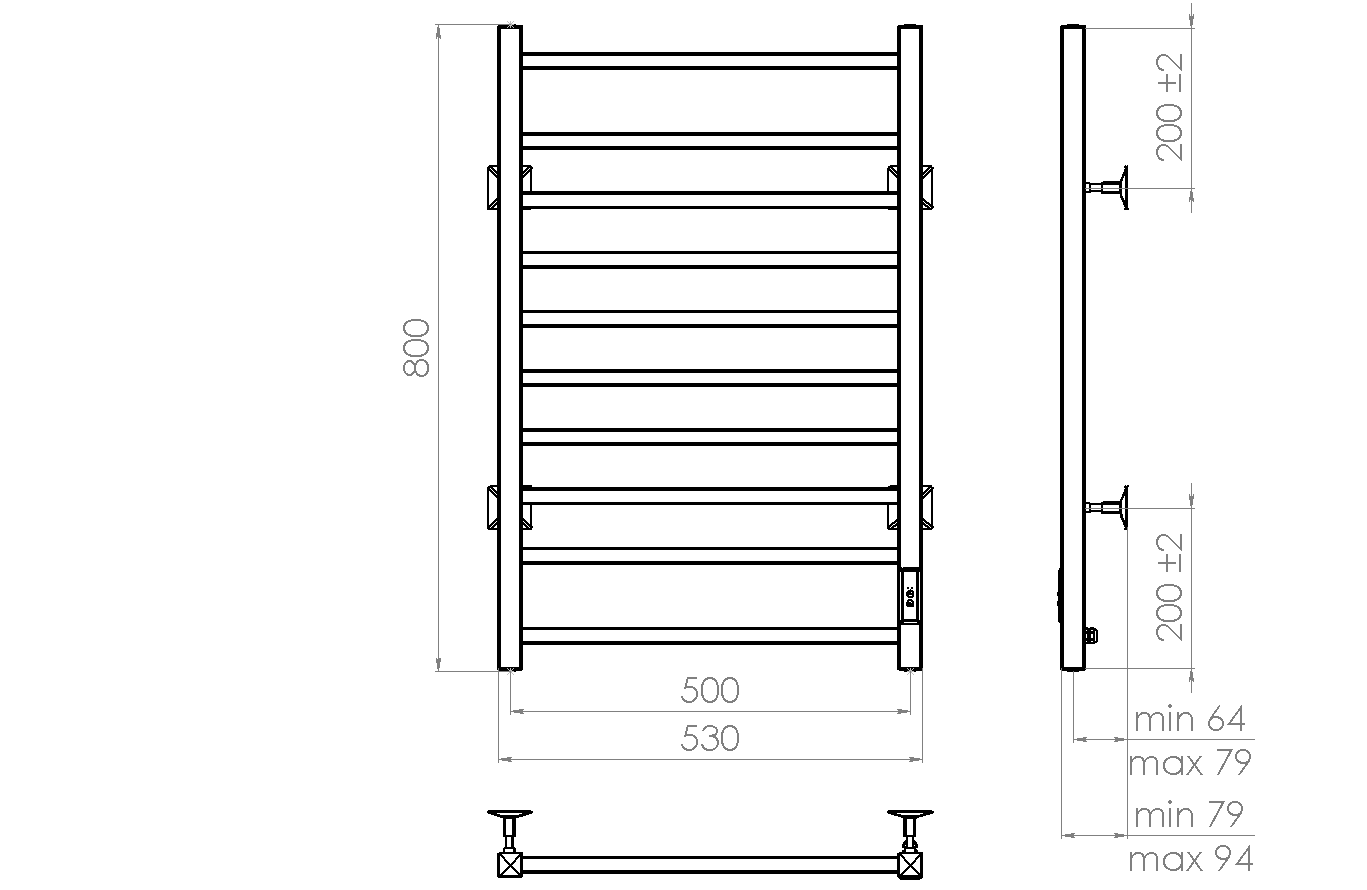 Полотенцесушитель электрический Vincea VTD-1LBE черныйРазмер: