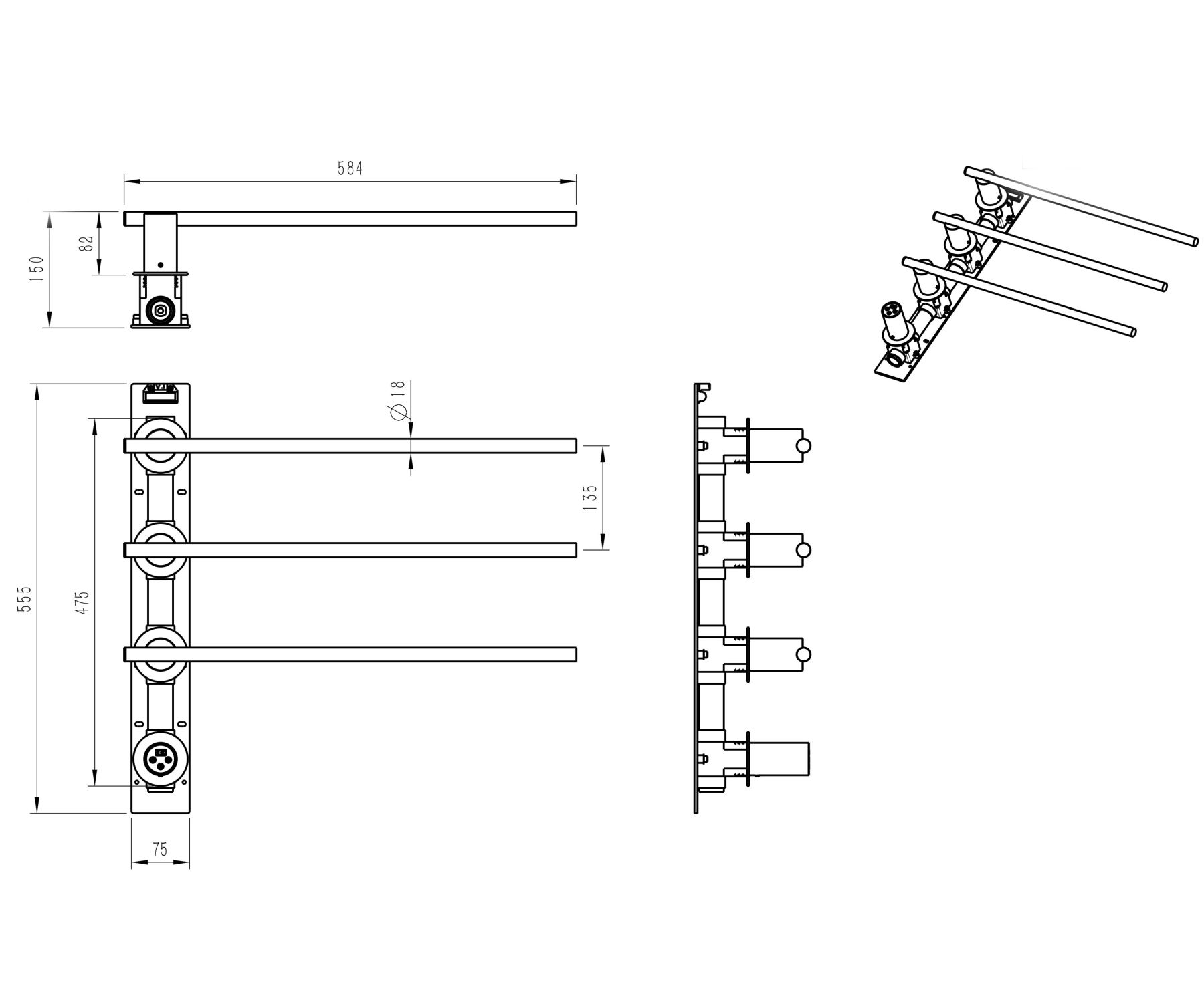 Полотенцесушитель электрический встраиваемый WONZON & WOGHAND DORTMUND, Черный матовый (WW-A363-MB)