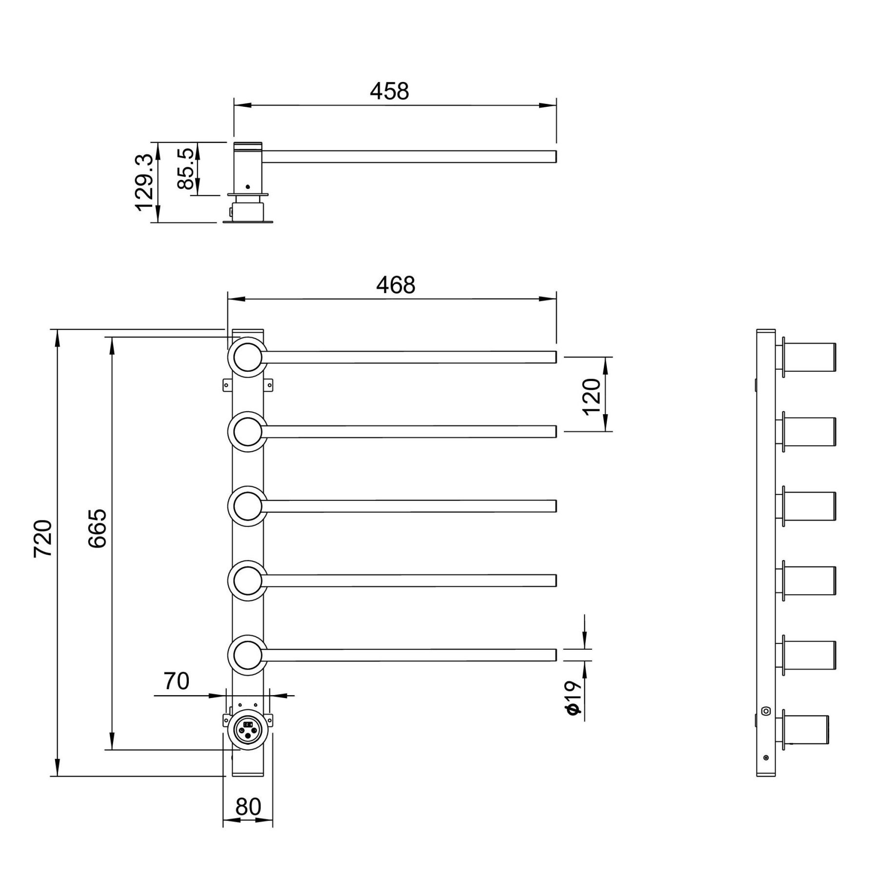 Полотенцесушитель электрический встраиваемый WONZON & WOGHAND HAMBURG, Хром (WW-AL315-CR)