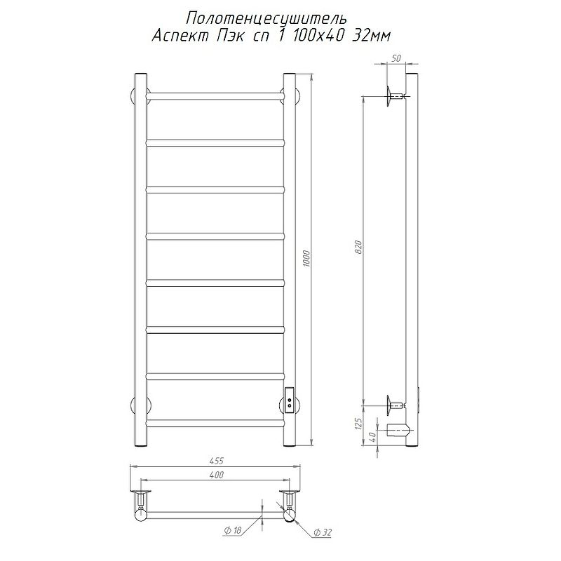 Полотенцесушитель Тругор Аспект Пэк сп 1 100х40 32 мм (АспектПэксп1/10040 32)