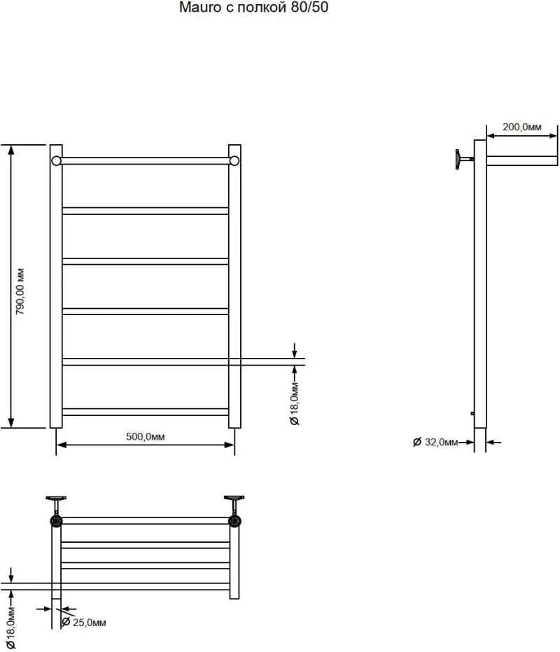 Полотенцесушитель водяной Aquanet Mauro 282321 с полкой 80x50 см хром