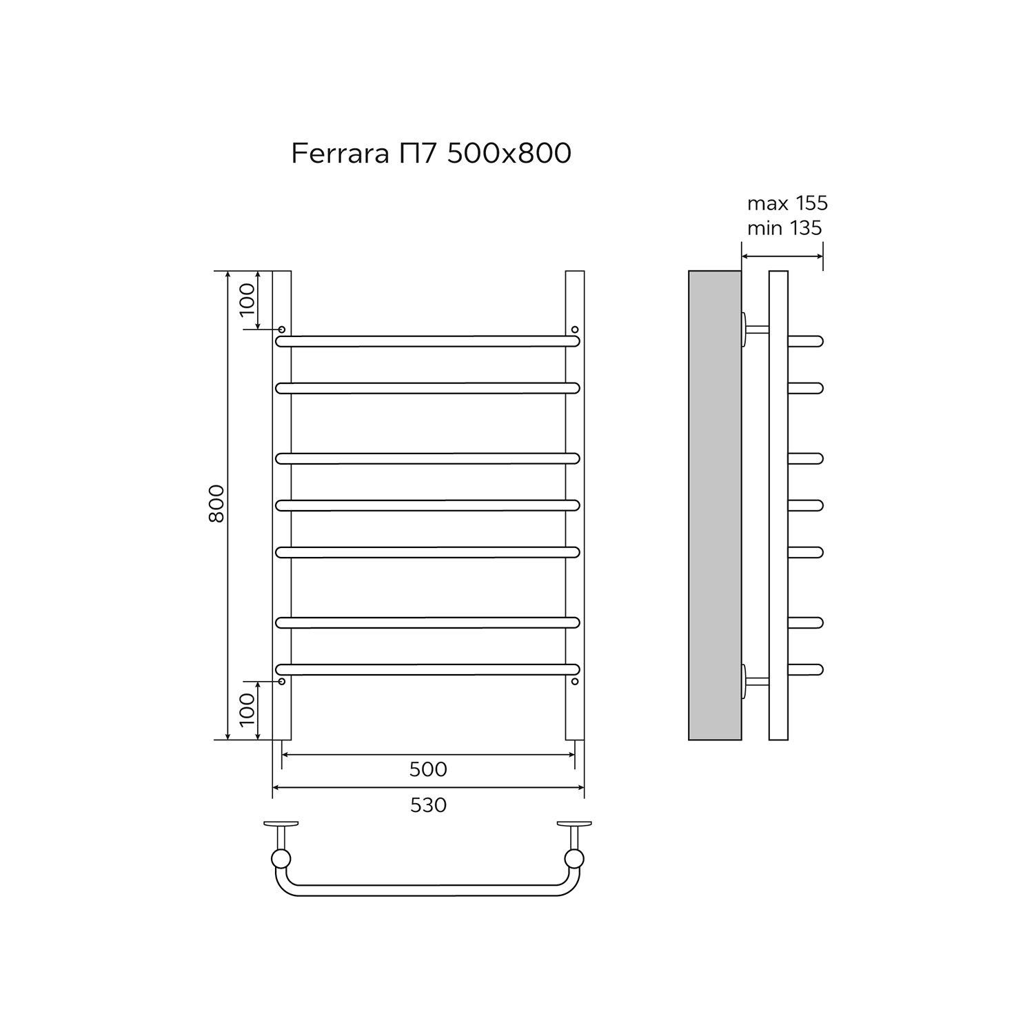 Полотенцесушитель водяной AZARIO FERRARA AZ09158 500/800 7 секций, нижнее/диагональное подключение, 1/2, хром купить