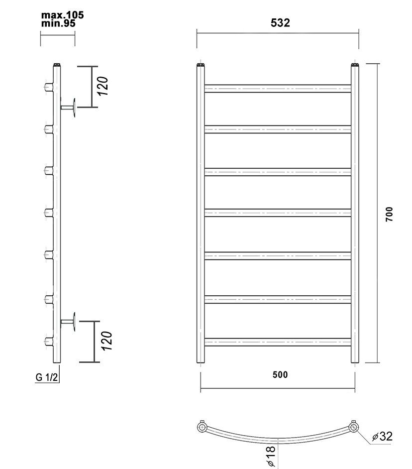 М/о расстояние (межосевое расстояние): 500Количество перекладин: 7Коллекция: КалипсоТип: водяныеЦвет: золотоШирина (мм): 532Высота (мм): 700Глубина (мм): 105-95Вес: 4,07Объем: 0,069Тэн/подключение: нижнееСтрана: РоссияГарантия: 10 лет