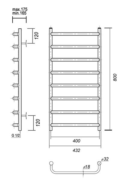 М/о расстояние (межосевое расстояние): 400Количество перекладин: 8Коллекция: СтефаноТип: водяныеЦвет: хромШирина (мм): 432Высота (мм): 800Глубина (мм): 175-165Вес: 3,3Объем: 0,065Страна: РоссияГарантия: 10 лет
