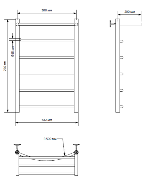 Полотенцесушитель имеет дугообразные перекладины, что очень удобно при эксплуатации.