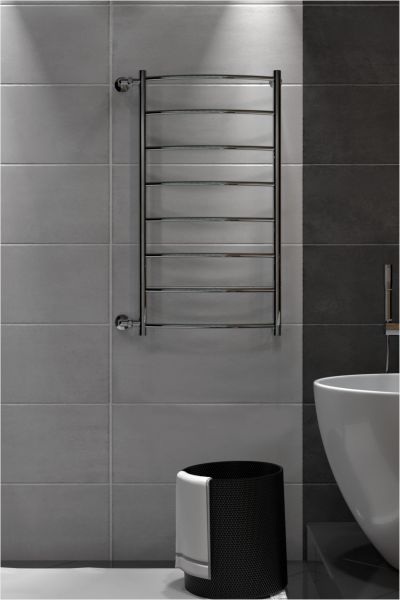 Полотенцесушитель имеет дугообразные перекладины, что очень удобно при эксплуатации.