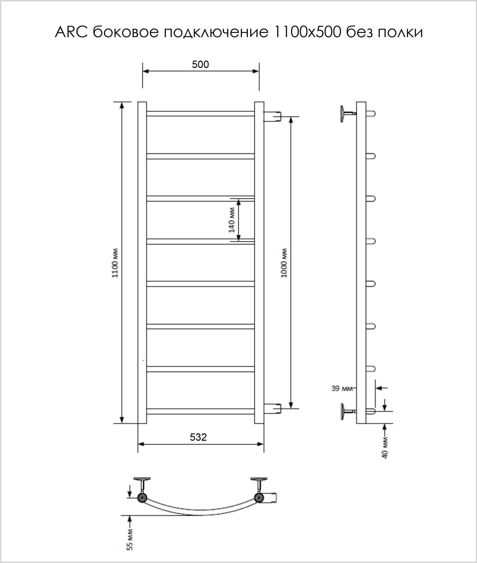 Водяной полотенцесушитель серии «Лесенка» Arc с боковым подключением – это модель, которая изготавливается в большом количестве вариаций размеров. Выбирая полотенцесушитель водяной, стоит учитывать размеры вашей ванной комнаты и места, где он будет размещен.