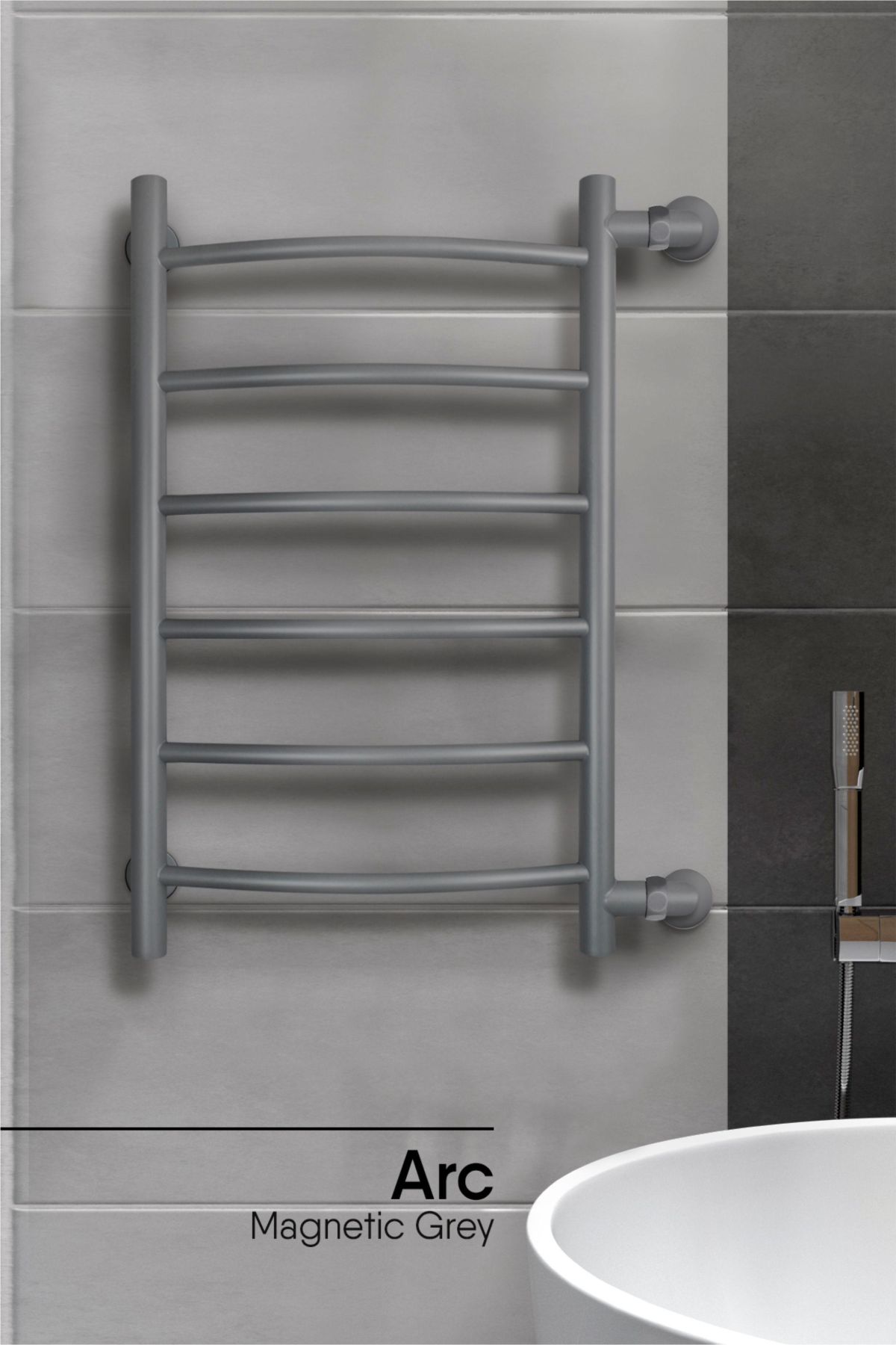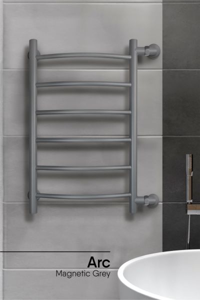 Серия «Лесенка» с боковым подключением - полотенцесушители водяные выполнены в цвете «Magnetic Grey» – глубокий серый оттенок.