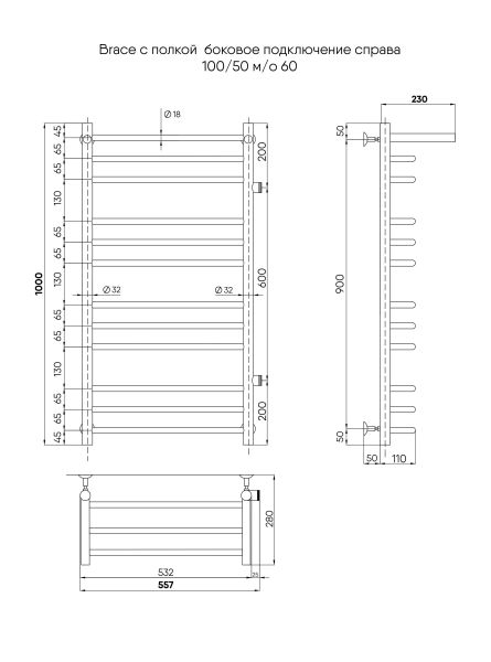 Полотенцесушитель водяной INDIGO Brace с полкой многофункционален и удобен в использовании. Выбирают за его скобообразные перекладины и интересный стиль. Полотенцесушитель боковой изготовлен из высококачественной нержавеющей стали. Качественная металлообработка в местах подключений обеспечивает плотное прилегание прокладки.
