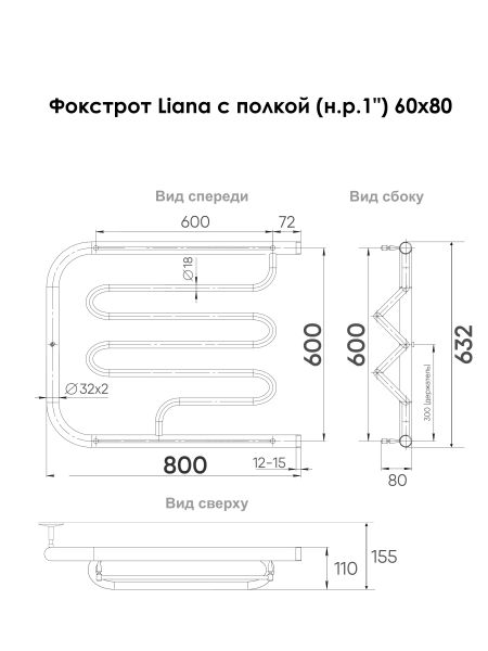 Полотенцесушитель водяной Indigo Фокстрот Liana FLW60-80P с полкой 60x80 см хром купить