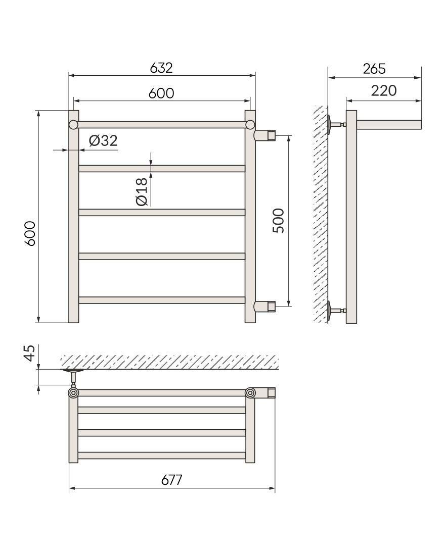 Полотенцесушитель водяной Indigo Line LLSHSW60-60R-б/п-50 с полкой 60x60 см хром купить