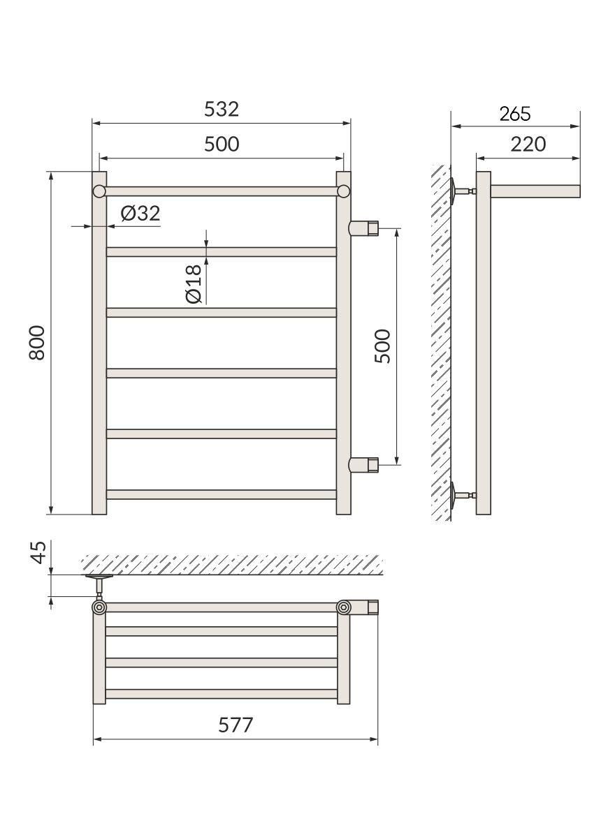 Полотенцесушитель водяной Indigo Line LLSHSW80-50R-б/п-50 с полкой 80x50 см хром купить