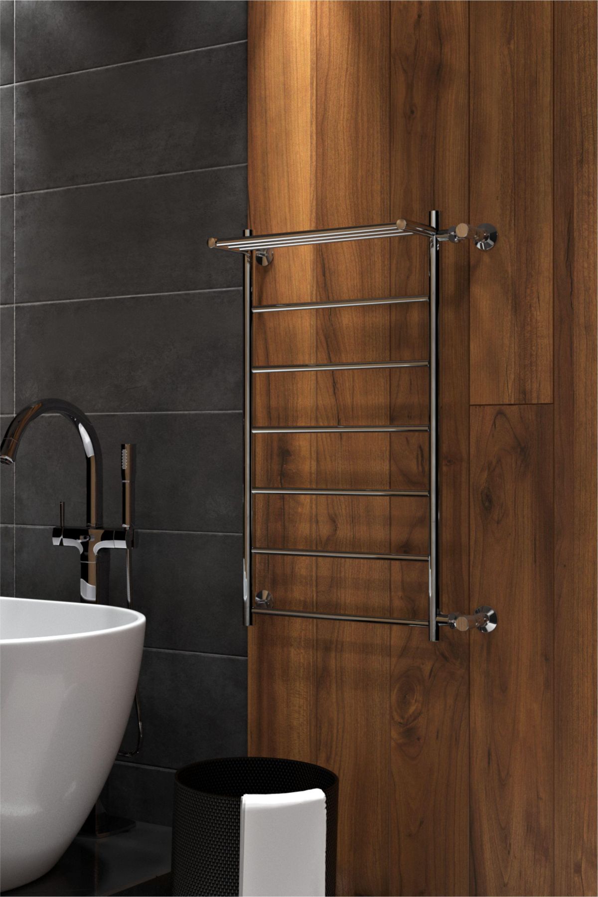 Водяной полотенцесушитель в форме Лесенки Line с полочкой – это оригинальная модель с пря... Подробнее