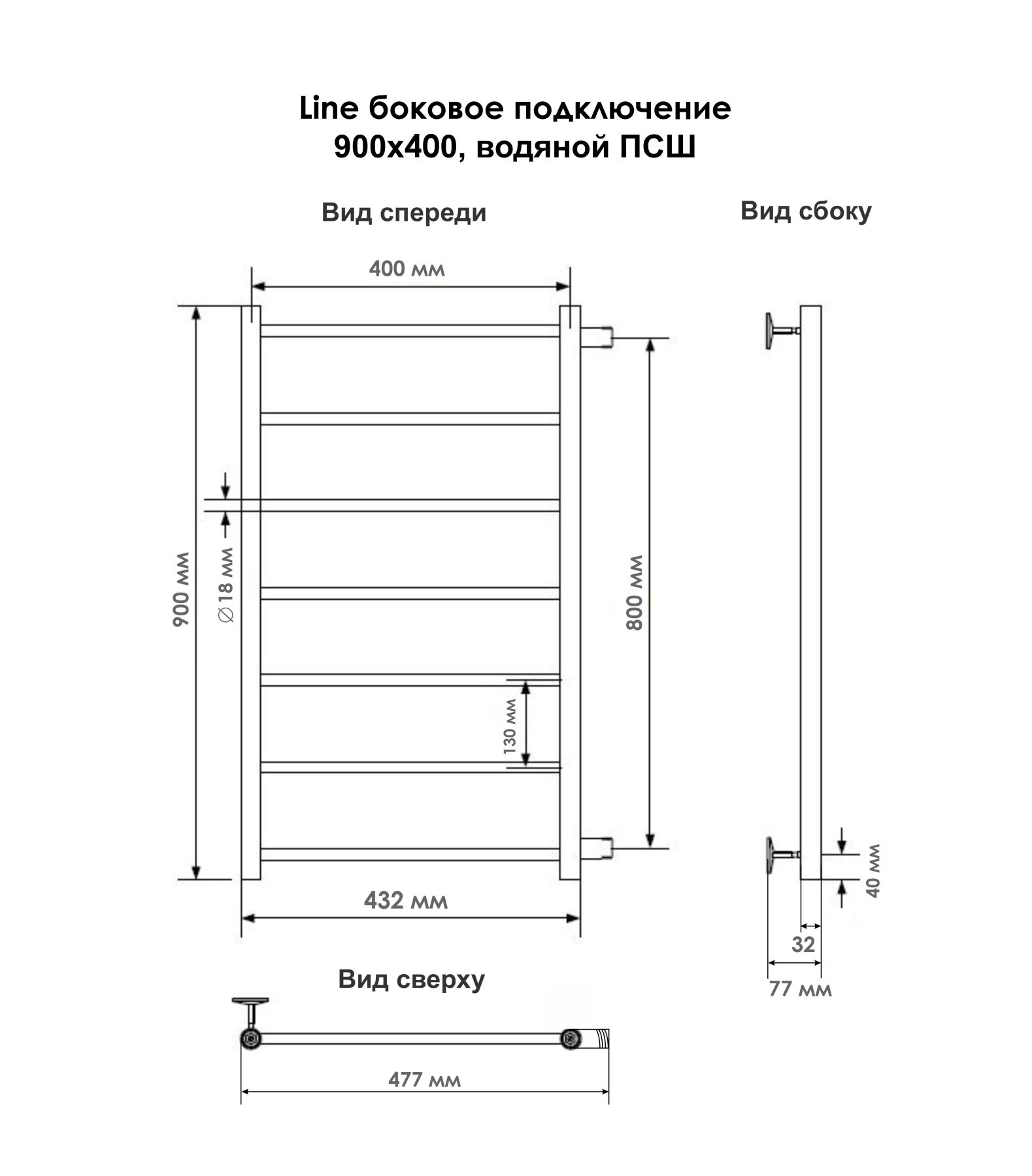 Водяной полотенцесушитель серии «Лесенка» Line с боковым подключением имеет большое количество перекладин, что удобно для сушки большого количества текстильных изделий. Изделие выпускается в нескольких размерах для удобства подбора в ванную комнату индивидуально. Простой, но стильный и изысканный сушитель изготовлен из высококачественной нержавеющей стали марки AISI 304, к тому же комплектуется держателями, колпачками и системой воздухоотводчиков. «Лесенка» имеет хорошую теплоотдачу и предотвращает появление плесени в ванной комнате.