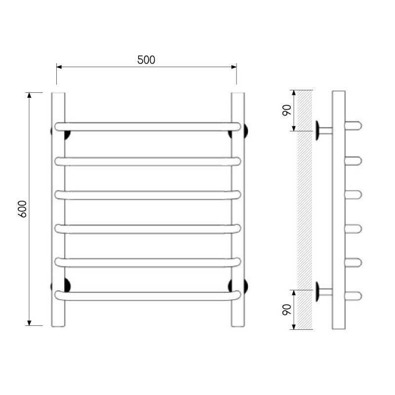 Полотенцесушитель водяной Laris Стандарт 73208014ЧМ П6 50x60см чёрный матовый