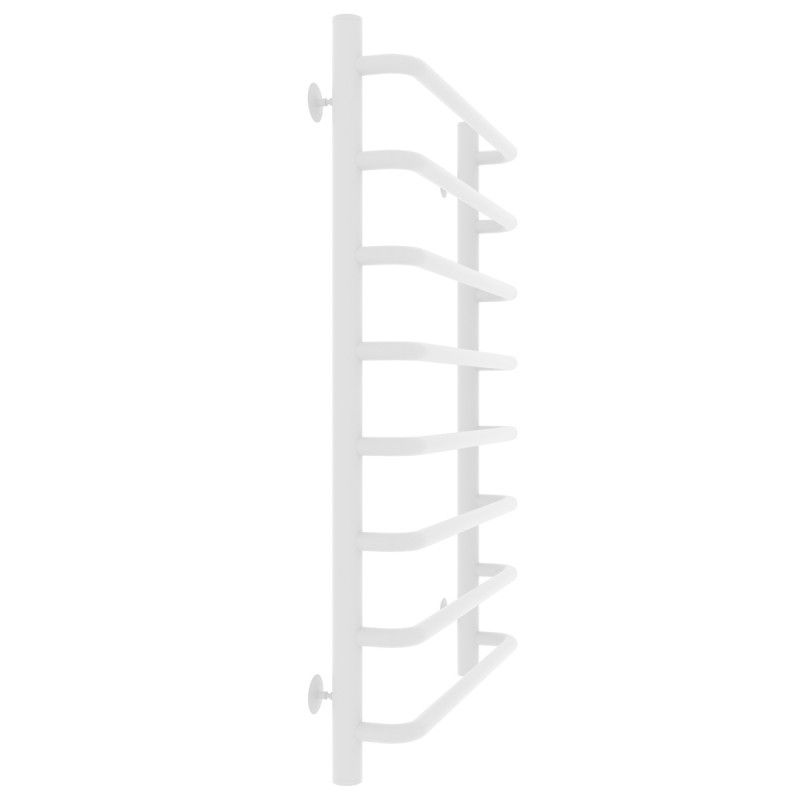 Модель: СтандартКод товара: 73208015БММатериал: сталь нержавеющая AISI304Цвет: белый матовый муар (RAL 9016)Резьба: 1/2" внутренняяПодключение: нижнее, диагональное, по стойкеДиаметры и толщина: стойка Ø32, толщина 2 мм; перемычка Ø20, толщина 1,5 ммРабочая жидкость: вода техническая, антифриз, маслоПараметры теплоносителя: рекомендуемое давление до 1,5 МПа; температура до 100 ° СВес: 5,8 кгКомплектация: