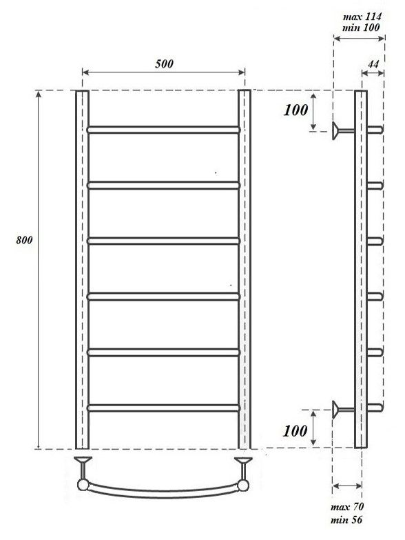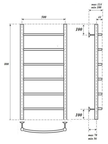 Полотенцесушитель - 1 шт, кронштейны для крепления к стене - 4 шт, кран Маевского - 1 шт, заглу... Подробнее