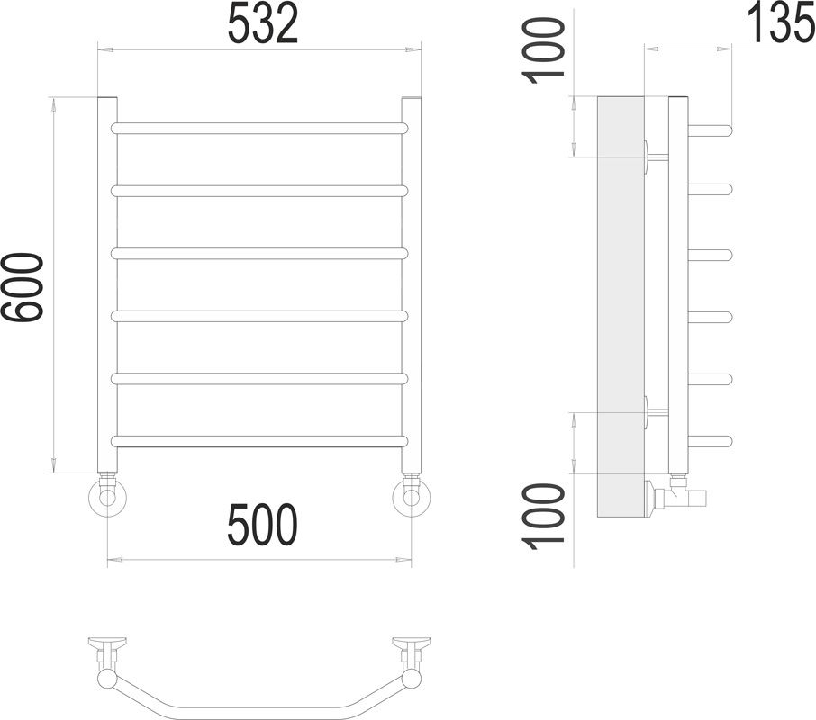 Полотенцесушитель водяной Terminus Виктория П6 500х600, ширина 53.2 см, высота 60 см, 4670078530080