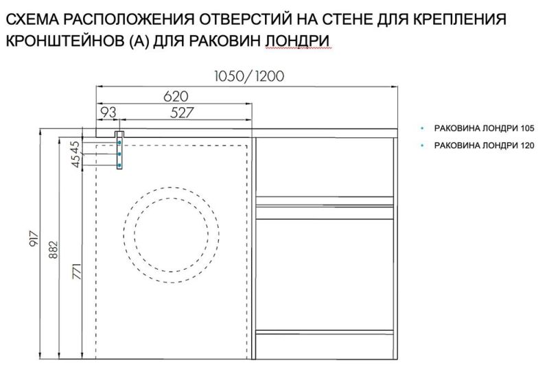 Раковина Акватон Лондри правая 120см 1A72243KLH010