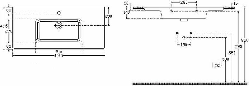 Отверстия под смеситель: 1.