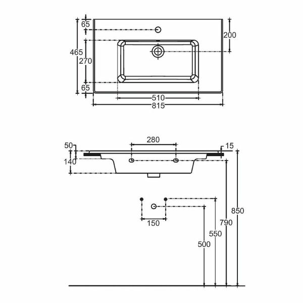 • Отверстия под смеситель: