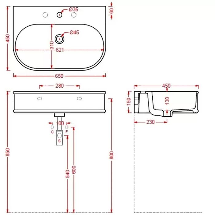• Отверстия под смеситель:
