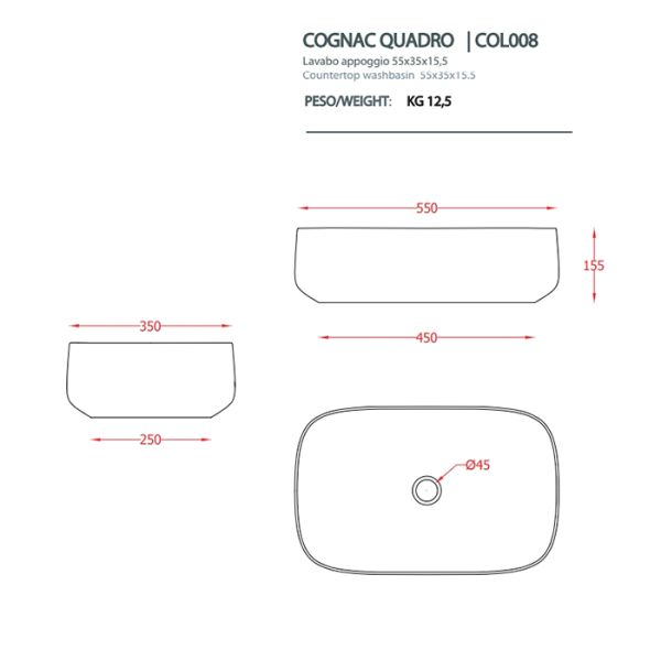 ArtCeram Cognac COL008 03 00 Раковина накладная на 55 см, размер 55x35хр15,5 см. Без перелива и плоскости под смеситель. Монтаж накладной на столешницу. Цвет черный глянцевый.