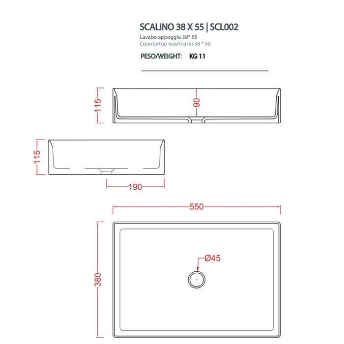 ArtCeram Scalino SCL002 17 00 Раковина накладная, размер 55х38х12 см. Без перелива и плоскости под смеситель. Монтаж накладной на столешницу. Цвет черный матовый.