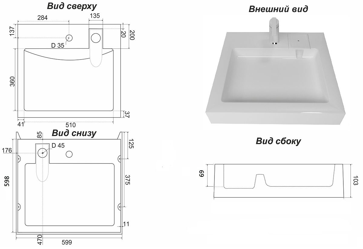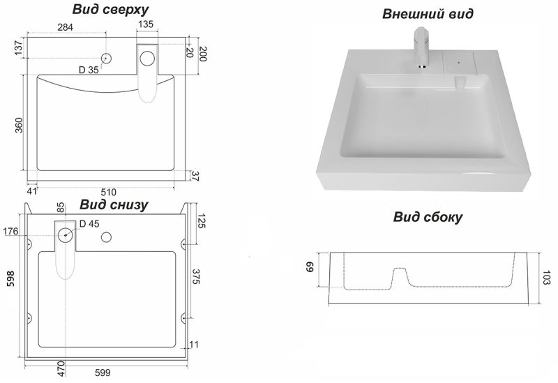 • Материал раковины литьевой мрамор
