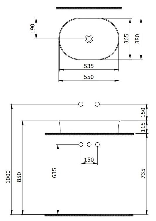 Накладная раковина из санфарфора Berges Ego SL размером 55х38х11,5 см.Овальной формы, без отверстия под смеситель, глянцевая белая.