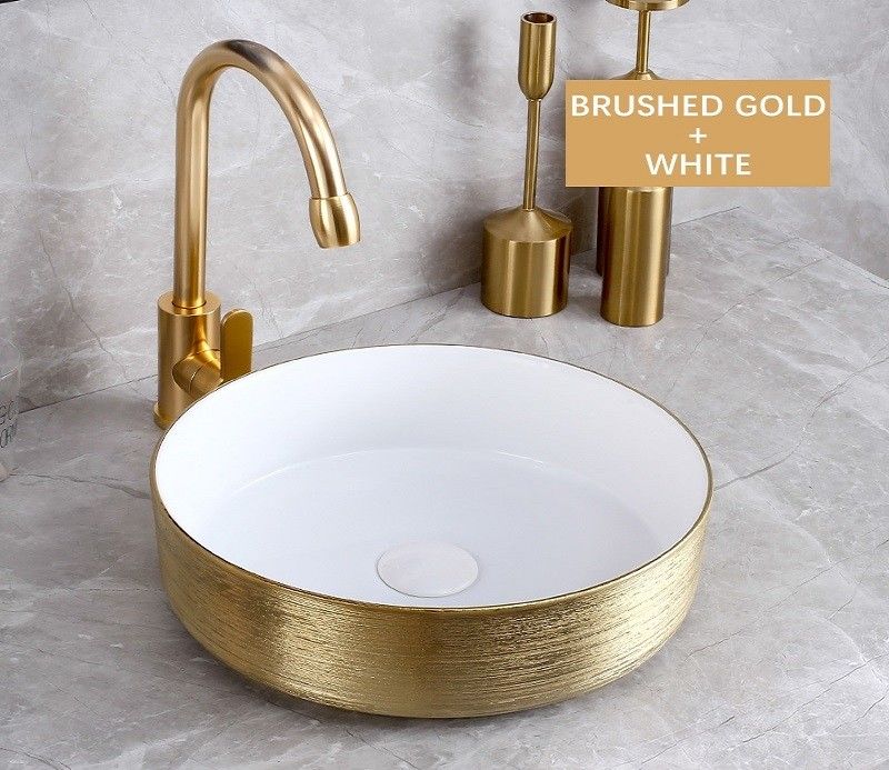 Раковина CeramaLux C1055-1 бело-золотая 36.5 смПодходит для ванных комнат различной планировки в современном стиле и отличается стильной и изящной формой.Материал: санфаянс.В комплекте поставки: раковина.