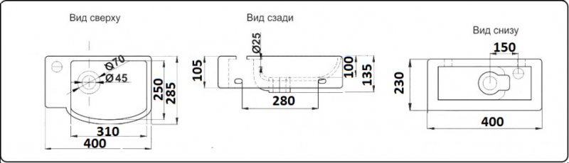 • Отверстия под смеситель:
