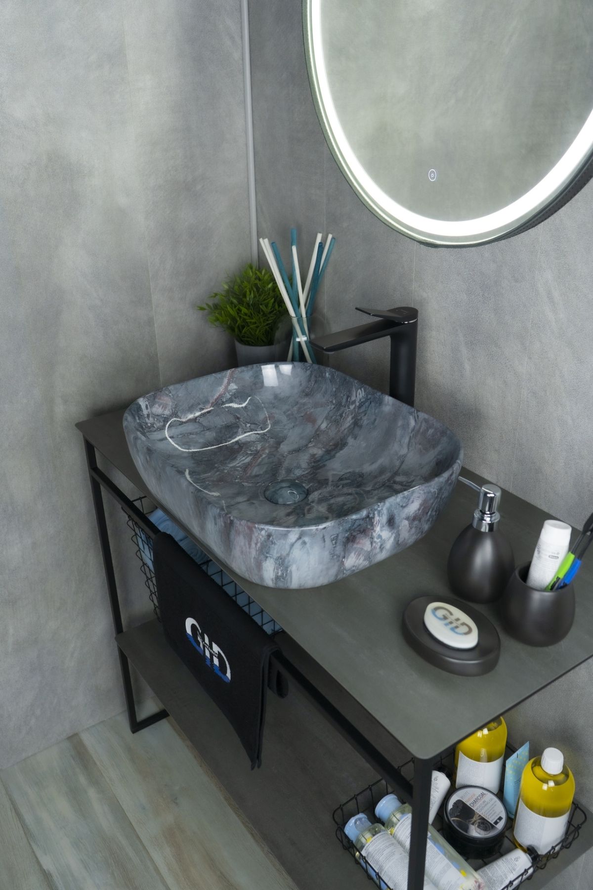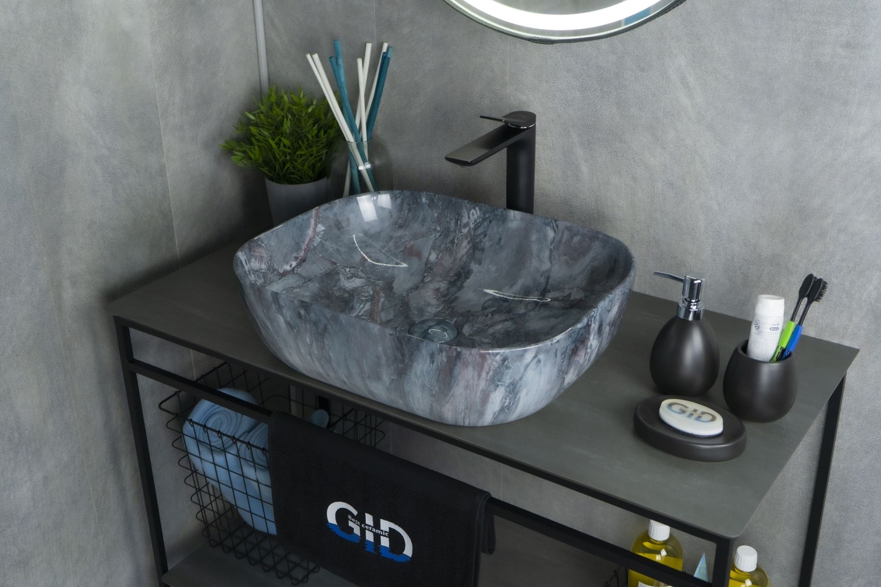 Серия Geometrico с прямоугольной формой: стиль и практичность с испанским качеством и европейскими стандартами. Раковина накладная GiD K397G124 — элегантная модель прямоугольной формы, изготовленная из высококачественной керамики с глянцевой поверхностью, создающей эффект натурального камня. Её строгий и современный дизайн идеально подойдёт для ванных комнат в минималистичном или современном стиле. Модель не имеет отверстия под смеситель, что позволяет использовать различные варианты настенных или встраиваемых смесителей, предоставляя свободу в дизайне интерьера. Раковина предназначена для установки на столешницу, подчёркивая стильный и функциональный интерьер ванной комнаты.