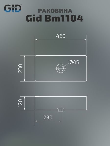 Раковина Gid Bm1104 53359 накладная черная матовая 46x23x12 купить
