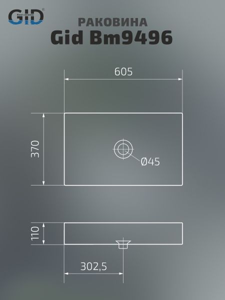 Раковина Gid Bm9496 53363 накладная черная матовая 60.5x37x11 купить