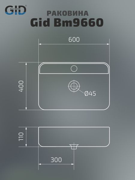 Раковина Gid Bm9660 53376 накладная черная матовая 60x40x11 купить