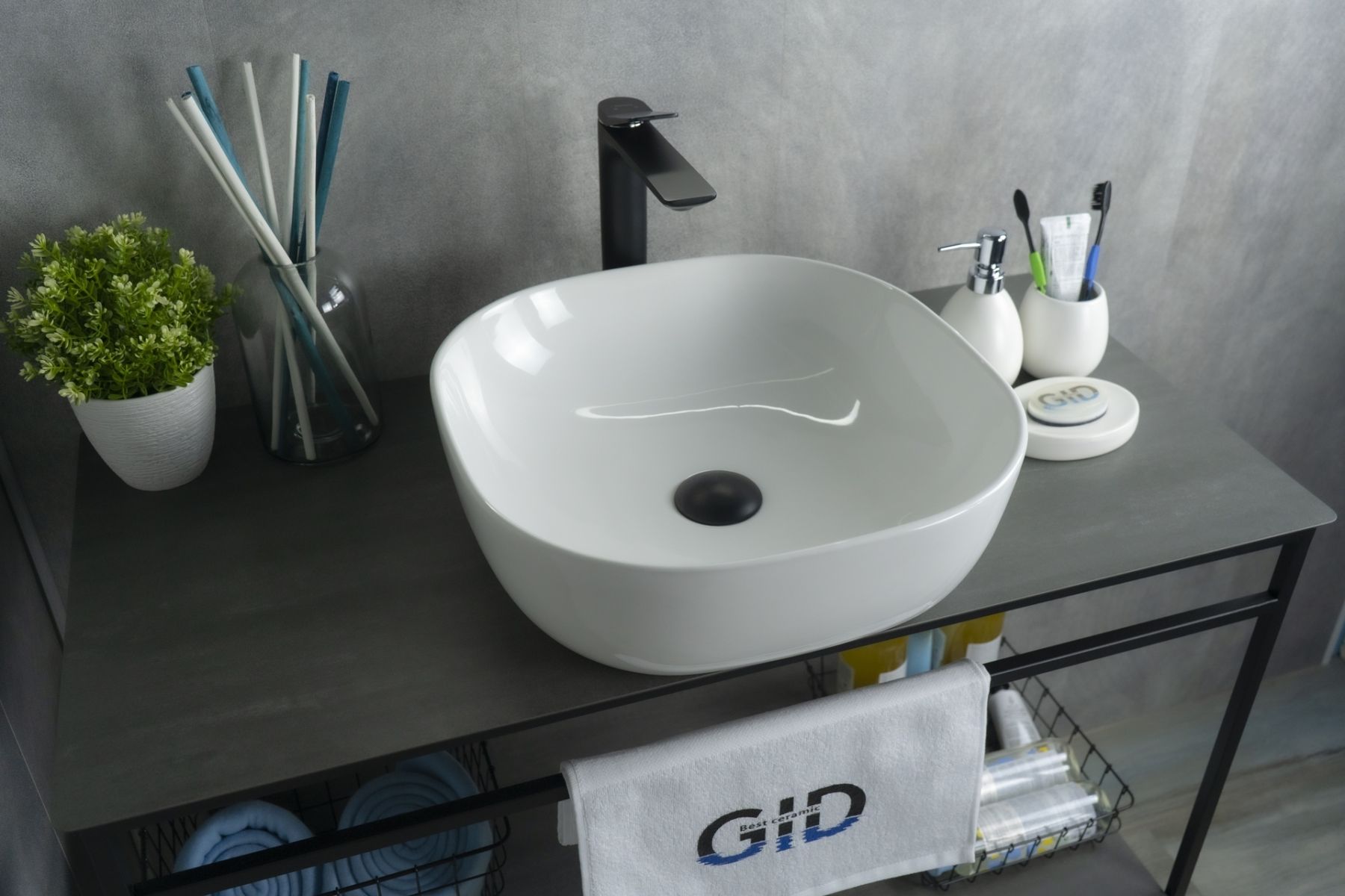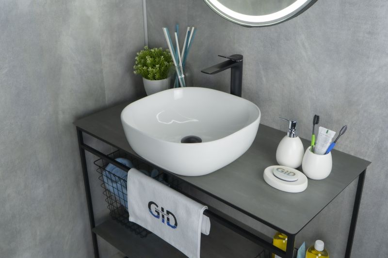 Серия Geometrico с прямоугольной формой: стиль и практичность с испанским качеством и европейскими стандартами. Накладная раковина GiD D1301 без отверстия под смеситель, изготовлена из мелкопористой керамики в белом глянцевом цвете. Гладкое стекловидное покрытие позволяет раковине быть устойчивой к загрязнениям. Квадратная форма и компактные размеры обеспечивают комфортное использование и легкую установку.