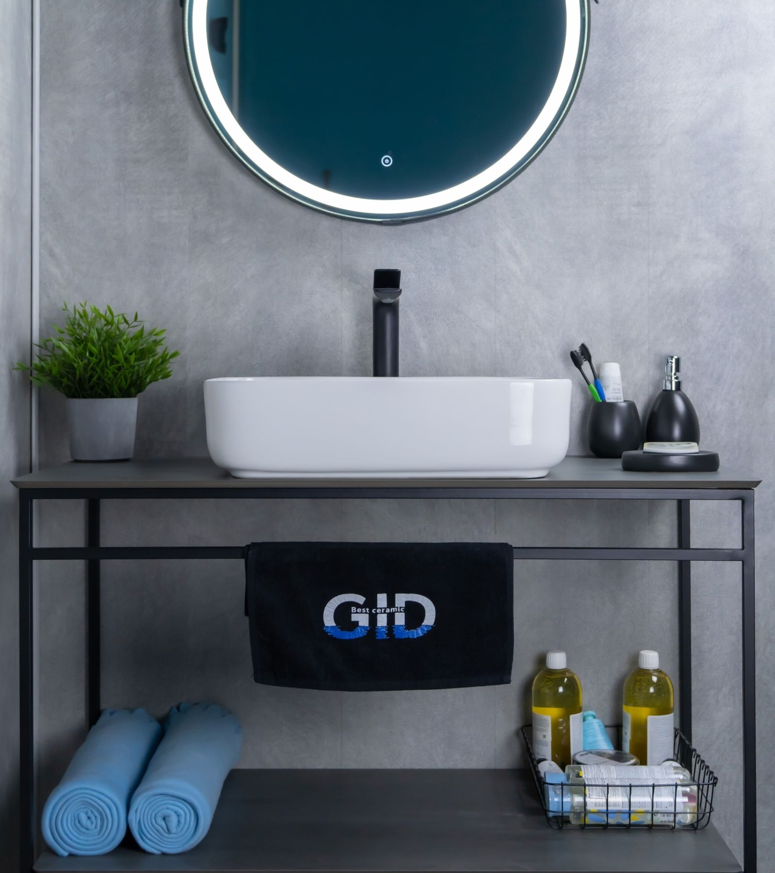 Серия Geometrico с прямоугольной формой: стиль и практичность с испанским качеством и европейскими стандартами. Накладная раковина GiD D1304 — сочетание элегантного дизайна и практичности для вашей ванной комнаты. Изготовлена из мелкопористой керамики с белым глянцевым покрытием, она придаст интерьеру свежесть и утонченность. Прямоугольная форма обеспечивает оптимальное пространство для комфортного использования. Отсутствие отверстия под смеситель подчеркивает минималистичный стиль, а накладной способ монтажа на столешницу облегчает установку и позволяет создать современный облик ванной комнаты.